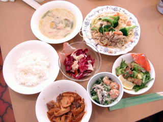 本日の料理は6品目できのこを中心とした肉や野菜等の組み合わせ料理となりました。本日の料理は6品目できのこを中心とした肉や野菜等の組み合わせ料理となりました。