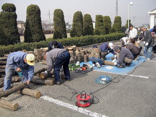 今年も、原木栽培勉強会が埼玉きのこ研究会、北関東天然きのこ会及び行田市今年も、原木栽培勉強会が埼玉きのこ研究会、北関東天然きのこ会及び行田市地域文化センターの共催で行われました。午前地域文化センターの共催で行われました。午前99時時3030分から、橋本世話人から植菌分から、橋本世話人から植菌の説明、松村会長からあいさつを頂いた後、の説明、松村会長からあいさつを頂いた後、99時時4040分頃〜分頃〜1111時頃にかけて植菌の作時頃にかけて植菌の作業が行われました。今回は、参加者が分担して業が行われました。今回は、参加者が分担して170170本のコナラの木にドリルによる本のコナラの木にドリルによる穴あけとシイタケのコマ打ち、イヌシデ及びサクラの原木穴あけとシイタケのコマ打ち、イヌシデ及びサクラの原木100100個にヒラタケの植菌個にヒラタケの植菌が行われ、また、本数は少なかったがキクラゲ、ナメコ、クリタケの植菌も行われが行われ、また、本数は少なかったがキクラゲ、ナメコ、クリタケの植菌も行われました。