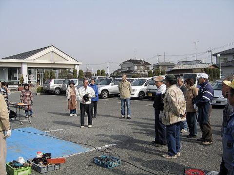 当日の天気は曇り時々晴れであったが、すっかり春めいて気温が上がり、作業でいい汗をかいた人が多かったようである。作業終了後は、行田市地域文化セ作業でいい汗をかいた人が多かったようである。作業終了後は、行田市地域文化センターの皆様のご協力により、すいとん、フクロタケ、アミタケ等が入ったきのこンターの皆様のご協力により、すいとん、フクロタケ、アミタケ等が入ったきのこ汁を御馳走になりました。喫食後、橋本世話人より植菌後の原木の管理について、詳しい説明があり、参加者からはナメクジ対策について質問が出ました。ナメクジ汁を御馳走になりました。喫食後、橋本世話人より植菌後の原木の管理について、詳しい説明があり、参加者からはナメクジ対策について質問が出ました。ナメクジ退治は次の方法が良いようです。回答退治は次の方法が良いようです。回答::ナメクジはきのこが好きであり、夜出てきてナメクジはきのこが好きであり、夜出てきて食べる。ビールで退治する方法もあるようであるが、一匹一匹ピンセットなどで取食べる。ビールで退治する方法もあるようであるが、一匹一匹ピンセットなどで取除く方法がよいのではないか。