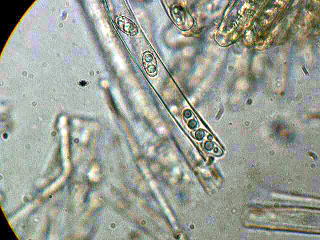 クリイロチャワンタケ 撮影 西田誠之 クリイロチャワンタケ胞子 撮影 西田誠之