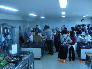 aaa冬晴れの一日、今年はヌエックの調理室がふさがっていたため上尾中央公民館の調理室で開催することとなった。料理好き(食べ好き?)の面々が集いきのこ料理の調理が定刻どおりスタートした。