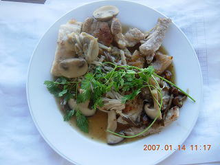 大館氏のレシピは主として野生のきのこを食材としたもので、この場では市販のきのこにアレンジされていた。いろいろあったようだが何とか食するに耐える状態に調理出来たようであった。