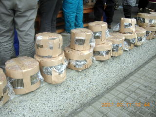 を塗り、ラップで覆い、サンドイッチ状にしてガムテ−プでとめる作業に移った。