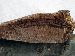 特徴の差異をすべて説明するのは、難しいのですが、写真のように、切断面をみると明らかに、コフキサルノコシカケと異なるので(管孔面と殻質が平行になる、コフキサルノコシカケは放射状等)、私もその旨、追加して、皆さんに説明しました。