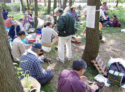 調理の最中に公園監視員がやってきた。昨年まで「火気厳禁」の看板があったので、ひと悶着の発生かと思いきや「鍋はいくつ使っているの」と聞かれた。三個だと答えると、早速1,500円徴収された。