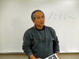 **プロジェクターによる発表・勉強会に参加して**プロジェクターによる発表・勉強会に参加して今年は野暮用が多く会の行事に参加できずにいたので、行事には久しぶりの参加である。部屋に入ると壁面いっぱいにきのこがプリントされたポスターや布、手描きの絵が張ってあり、まずそれらに眼をひきつけられる。絵はつぼの形や柄の形、つばの形などが大きく描いてあり分りやすい。また色鮮やかなインドネシアのきのこやフランスのきのこまであり、きのこを学ぶのに国境は無く、又近頃の埼玉きのこの会の国際化を肌で感じる。今年は野暮用が多く会の行事に参加できずにいたので、行事には久しぶりの参加である。部屋に入ると壁面いっぱいにきのこがプリントされたポスターや布、手描きの絵が張ってあり、まずそれらに眼をひきつけられる。絵はつぼの形や柄の形、つばの形などが大きく描いてあり分りやすい。また色鮮やかなインドネシアのきのこやフランスのきのこまであり、きのこを学ぶのに国境は無く、又近頃の埼玉きのこの会の国際化を肌で感じる。発表はプリントに沿って富田さんの「きのこの子供達」から始まった。大好きな幼菌たちはどれも可愛い。毒あるきのこでさえかわゆいからふしぎだ。どの表情も絵葉書にしたくなる。 2番目は大久保さん。2007年に見たきのこと一口におっしゃるが青森から奄美大島までと地域も種類も多くとても覚えきれない。わがまち川越にもキタマゴタケやマイタケもあったといわれ驚いたが、龍王峡でヤマヒルに血を吸われながらも写真を取り続けるという執念にそこまでやるかと肝をつぶす。鹿の糞のあるところにはヤマヒルがいるとの話はおもしろかった。これは忘れないほうがいい。 3番手は永井さん。フランス菌学会の話。プリントを読むと創立は1884年という。これだ、歴史が違うのだ。これは文化だと思った。だから子供のお話の中にもきのこはよくでてくるのだ。発表はプリントに沿って富田さんの「きのこの子供達」から始まった。大好きな幼菌たちはどれも可愛い。毒あるきのこでさえかわゆいからふしぎだ。どの表情も絵葉書にしたくなる。 2番目は大久保さん。2007年に見たきのこと一口におっしゃるが青森から奄美大島までと地域も種類も多くとても覚えきれない。わがまち川越にもキタマゴタケやマイタケもあったといわれ驚いたが、龍王峡でヤマヒルに血を吸われながらも写真を取り続けるという執念にそこまでやるかと肝をつぶす。鹿の糞のあるところにはヤマヒルがいるとの話はおもしろかった。これは忘れないほうがいい。 3番手は永井さん。フランス菌学会の話。プリントを読むと創立は1884年という。これだ、歴史が違うのだ。これは文化だと思った。だから子供のお話の中にもきのこはよくでてくるのだ。次は少し難しい神さんの講演。難しいがたくさんの資料を用意してくださるので後から勉強できる。菌類を生態学から見る、観察せよとおっしゃる。けれどそんなことを考えながらキノコを見つめるなんて凡人にはなかなか出来ないことだ。午前中の最後は西田さんのサビハチノスタケ属という地味な聞いた事のない名のきのこの採取・観察記録の発表。こちらも詳しい資料が用意されている。珍しい、めったにお目にかかることのないきのことの事だが、こんなまずそうなきのこに血道をあげるなんて・・・、いや、キノコ研究会のかがみだ。・・・、いや、キノコ研究会のかがみだ。こんがらがった頭を昼食でやすめ午後の勉強が始まる。初めて話をきかせていただく江口さんは越生町越生町に発生するきのこと気象の関係を5年に亘って調査された。きのこと気象はわたしが考えても関係は深いと思えるので、きのこの個々の名前がわかればもっと興味がわくと思った。最後は分りやすく、上原さんが今年であった初めてのきのこを紹介してくださる。ベテランが初めて出会うきのこがまだある、ということのほうがおもしろいいし、まだまだ知られないきのこがあるんだなーとキノコ界の大きさにあらためて感心する。たくさんの資料を用意してくださった発表者の方には時間が足りなかったのではと感じ、又聞くほうも、もう少しゆっくり話を聞きたかったと思える勉強会であった。おかげで有意義な1日が過ごせたことがうれしい。有難うございました。たくさんの資料を用意してくださった発表者の方には時間が足りなかったのではと感じ、又聞くほうも、もう少しゆっくり話を聞きたかったと思える勉強会であった。おかげで有意義な1日が過ごせたことがうれしい。有難うございました。