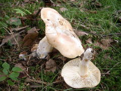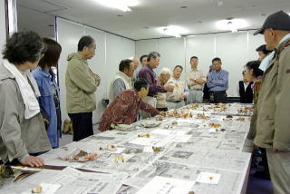 今年は浅間の南麓から入ってみた。浅間山荘の駐車場に車を入れ、谷筋を登ってゆくと両側のカラマツ林の中には、ハナイグチの姿が散見できた。とにかくきのこ狩りの人の姿のみ目立ち、リコボウ一本に絞り込んで採取しているらしい。観察場所ときのこの種にもよるが総じて今年はきのこの影が薄いと感じた。 今年は浅間の南麓から入ってみた。浅間山荘の駐車場に車を入れ、谷筋を登ってゆくと両側のカラマツ林の中には、ハナイグチの姿が散見できた。とにかくきのこ狩りの人の姿のみ目立ち、リコボウ一本に絞り込んで採取しているらしい。観察場所ときのこの種にもよるが総じて今年はきのこの影が薄いと感じた。 宿に着くと震え上がるほどの寒さであった。展示されたきのこもハナイグチばかりが目に付き他のきのこは少ない。がシロシメジがあり、この種はおそらく当会で初めて持ち込まれたと思う。 宿に着くと震え上がるほどの寒さであった。展示されたきのこもハナイグチばかりが目に付き他のきのこは少ない。がシロシメジがあり、この種はおそらく当会で初めて持ち込まれたと思う。 帰りは軽井沢経由で観察したがきのこは閑散としたものであった。 帰りは軽井沢経由で観察したがきのこは閑散としたものであった。