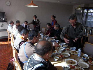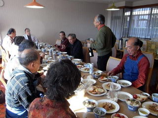 正午前に盛り付けも終了し、余裕で新年会へと移行していった。会長の挨拶、オメデトウの乾杯の後、例年通りきのこ談義に花を咲かせながら、楽しいひと時を過ごすことができた。