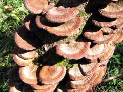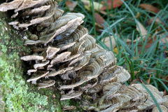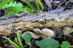カワラタケ、アラゲカワラタケ、ミダレアミタケ、チャミダレアミタケ、ヤケイロタケ、ヒメモグサタケ、ニクウスバタケ、チャカイガラタケ、ウズラタケ、オオミノコフキタケ