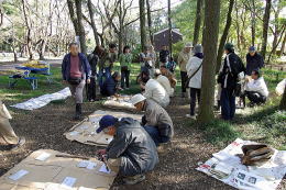 きのこ汁は、皆さんが持ち寄った肉やきのこ、野菜があふれて「きのこの煮付け」のようになりましたが、大きな鍋二つが空っぽになりました。葛西さん、野沢さん等の献身的な努力によるものです。**園内で採集されたきのこ**園内で採集されたきのこ 佐藤 俊朗