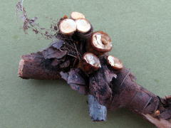 北陸のキノコ図鑑に図示してあるものは、この状態の標本ではないようで、もとより色合いは乾湿その他の状態で変異の巾があり、なかなか判別しにくいのですが、種の特徴や説明内容は一致しているので、関東で採取されているものと同一種と思われます。