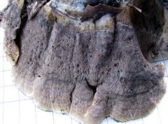ツブイボタケ 撮影 富田 稔 ツブイボタケ管孔 撮影 富田 稔**タコウキン科**タコウキン科:タマチョレイタケ、チリメンタケ:タマチョレイタケ、チリメンタケ、ニクウチワタケ、ニカワオシロイタケ属の一種