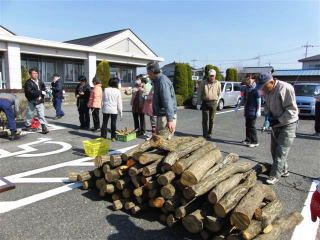 aaa3月11日3月11日((金金))に起きた大地震により、参加できない方も多かったが、延期せずに起きた大地震により、参加できない方も多かったが、延期せず予定通り実施しました。予定通り実施しました。9時30分から作業の説明と、作業上の諸注意(回転体:ドリルによる巻き込み)9時30分から作業の説明と、作業上の諸注意(回転体:ドリルによる巻き込み)(ハンマーによる指叩き)(原木の落下注意)(カッターによる切傷)を話しました。(ハンマーによる指叩き)(原木の落下注意)(カッターによる切傷)を話しました。準備された原木類は、前日橋本稔さんと長谷川勝三さん達が玉切ってくれました。準備された原木類は、前日橋本稔さんと長谷川勝三さん達が玉切ってくれました。種菌は福島が準備しました。種菌は福島が準備しました。種菌は福島が準備しました。①、シイタケの原木栽培シイタケの原木栽培最初の作業はシイタケの原木(コナラ・太さ10~15cm)に穴あけ後、一本に最初の作業はシイタケの原木(コナラ・太さ10~15cm)に穴あけ後、一本に最初の作業はシイタケの原木(コナラ・太さ10~15cm)に穴あけ後、一本に平均50駒(8、5平均50駒(8、5mmmm・ブナ)程打ち込みました。・ブナ)程打ち込みました。② 、短木栽培等② 、短木栽培等次に次にナメコナメコ、、ヒラタケヒラタケ、、ナラタケナラタケの順に、短木栽培の順に、短木栽培や原木栽培や原木栽培をを、、表1表1、、表2のような表2のような内容で実施しました。内容で実施しました。内容で実施しました。 表1使用した原木と大きさ 表1使用した原木と大きさ 表1使用した原木と大きさ