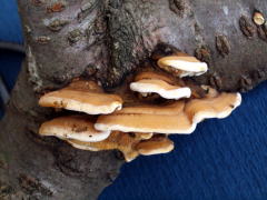 ヒイロタケ、ベッコウタケ、ミダ゛レアミタケ、**キノハダアシグロタケ(近縁種)、シハイタケ**、**ダイダイタケ**