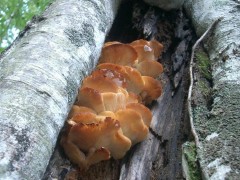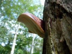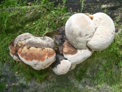 で、「アイスマン」の遺体の持ち物の皮袋に残されていたことでも著名なきのこである。ブナの倒木に、しばしば丸っこく拳大で生えているのも、ツリガネタケ