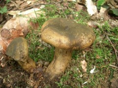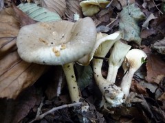 私達のグループが採取してきた判明種は、前記の他、ムラサキハツやチャオビフウセンタケがあった。またカラマツシメジに似て、ヒダに黒いシミが一面に出