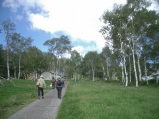 リフトを2基乗り継いで着いたところは、白樺の多い美しい高原帯だった。ナナカマドが沢山の真っ赤な実をぶら下げている。例によって、山菜、きのこ採取