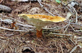 ◎オオキヌハダトマヤタケ--やはり高地に多く見られる。根元のふくらみは不正形である。