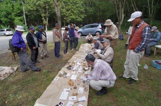 昼食後西田、大館、吉永、福島の4人できのこの鑑定を担当しました。