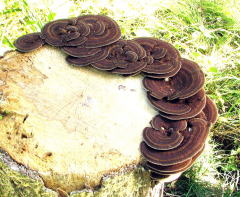 当日の公園周辺は、乾いていて毎度のようにキノコの種類が少ないのではと危惧したとおり採集種も少なく、多孔菌ばかりが目立つといった按配であった。
