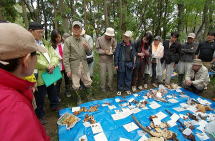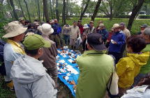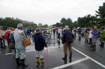 集合して、二年ぶりとなる塩津氏の挨拶、事務局よりの連絡の後、小雨の中を皆さん観察に出かけた。