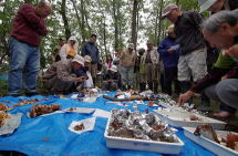 いつもの鑑定会場はどうだろうかと下見したがぬかるんでいる様子だった。愈々集合時刻になる頃は薄日が差し、しばらくするとまた小雨になるという不安定な空模様の一日となった。