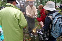 鑑定会場もいつものところで強行し、福島会長による「きのこ汁」をセッティングし終わる頃にまた強めの降りとなり、全て濡れてしまった。
