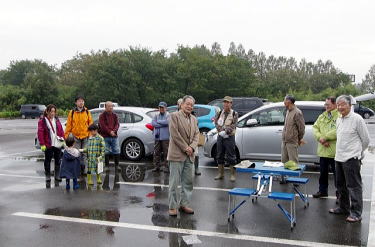 集合して、二年ぶりとなる塩津氏の挨拶、事務局よりの連絡の後、小雨の中を皆さん観察に出かけた。
