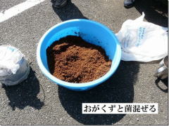販売終了後プリントを見ながら30分程、栽培方法や要領について説明しました。仮伏せは敵だらけの菌の世界で、いち早く自分の城を造ってしまうという大事な作業である事や、キノコの栄養菌糸の生長には十分な湿度と適度な温度が必要であること等を話しました。