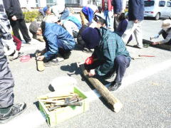 9時30分から作業の説明と作業上の諸注意(回転体:ドリルによる巻き込み)(ハンマーによる指叩き)(原木の落下注意)(カッターによる切傷)等の話しがなされました。作業の流れは以下の通りです。