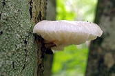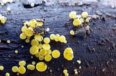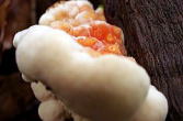 ◎ツガサルノコシカケは針葉樹に発生する。乾燥を防ぐため幼菌は液滴をまとっている。