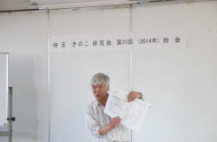 2015 2015年度開催を検討の埼玉菌類観察会(埼玉フォーレ)は日本菌学会から共催の要請があり、年度開催を検討の埼玉菌類観察会(埼玉フォーレ)は日本菌学会から共催の要請があり、44月月1212日の役員会で要請を受ける方向で検討することが決定しました。総会では大舘がどんな作業が発生するか、タイムスケジュールなどをまとめた資料をもって説明し、後藤から補足説明がありました。会員から議決または承認が必要ではないかという意見が出ましたが、共催するかどうか不確定要素があるとの回答で了承されました。日の役員会で要請を受ける方向で検討することが決定しました。総会では大舘がどんな作業が発生するか、タイムスケジュールなどをまとめた資料をもって説明し、後藤から補足説明がありました。会員から議決または承認が必要ではないかという意見が出ましたが、共催するかどうか不確定要素があるとの回答で了承されました。今年度の行事の変更点・注意点今年度の行事の変更点・注意点・・66月…観察会の集合時間が、観察時間の確保のため昨年より月…観察会の集合時間が、観察時間の確保のため昨年より99時になっています。時になっています。・・77月…昨年は月…昨年は3030周年記念行事のため小川げんきプラザで行われましたが、今年は従来通り美の山公園で開催します。周年記念行事のため小川げんきプラザで行われましたが、今年は従来通り美の山公園で開催します。・・88月…これまでは平日に行われましたが、平日では参加できないという声に応えて今年は月…これまでは平日に行われましたが、平日では参加できないという声に応えて今年は2323日(土)〜日(土)〜2424日(日)の土日の日程で行われます。日(日)の土日の日程で行われます。・・99月…月…20102010年に行われた武尊山山麓を観察地として行われます。申し込み先が藤野に一本化されています。年に行われた武尊山山麓を観察地として行われます。申し込み先が藤野に一本化されています。・・1010月…昨年は美の山公園で行われましたが、開催場所が小川げんきプラザに戻ります。月…昨年は美の山公園で行われましたが、開催場所が小川げんきプラザに戻ります。 開催日は 開催日は1313日(月・体育の日)です。日(月・体育の日)です。・・1111月…問合せ先から福島から大舘に変更されました。月…問合せ先から福島から大舘に変更されました。・・11月…料理講習会がなくなり、大宮東口近くの店で新年会だけが行われます。カラオケ機器が持ち込みのCD、DVDに対応しているので自慢のキノコの写真を公開することもできます。月…料理講習会がなくなり、大宮東口近くの店で新年会だけが行われます。カラオケ機器が持ち込みのCD、DVDに対応しているので自慢のキノコの写真を公開することもできます。・・22月…今年も顕微鏡講習会が行われます。月…今年も顕微鏡講習会が行われます。2020名限定の申し込み制ですからご注意ください。名限定の申し込み制ですからご注意ください。・・33月…申し込み先が橋本に戻りました。月…申し込み先が橋本に戻りました。20142014年度役員その他年度役員その他会長 福島隆一 副会長 上原貞美、大舘一夫会長 福島隆一 副会長 上原貞美、大舘一夫