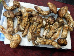 後刻のネタばらしを聞くと、野沢氏が別所温泉の知人の手伝いにマツタケ山に入り、そのお礼としてもらってきたものだという。私が見た時点で未だ17、8本はあった。