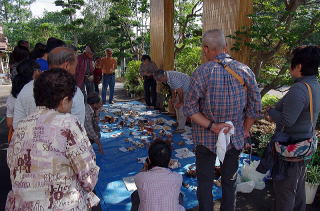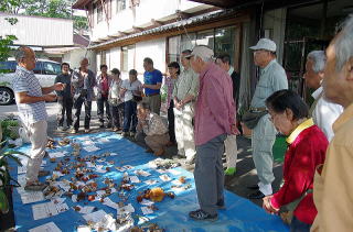 野沢氏、持参のマツタケ 撮影 西田誠之