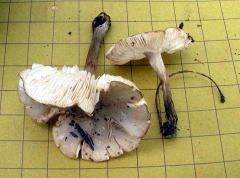 同定会場に並んだキノコは、たくさんの種類があり、ヒラタケやエノキタケ等の晩秋型キノコの他に、初秋まで(1010月中頃まで)と思い込んでいたチチアワタケが綺麗な姿で多数並んだ。