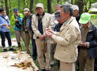 昨年は大勢のきのこたちと出会えたが、今年はどうであろうとワクワクして集合時刻を待った。大舘副会長の挨拶・事務局の連絡があり、皆さん三々五々と採集に向かわれた後、同定会場の設定を行い福島会長の(キノコ汁?)到着を待った。