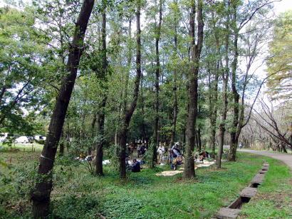 昨年は大勢のきのこたちと出会えたが、今年はどうであろうとワクワクして集合時刻を待った。大舘副会長の挨拶・事務局の連絡があり、皆さん三々五々と採集に向かわれた後、同定会場の設定を行い福島会長の(キノコ汁?)到着を待った。