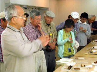 今回は、森林公園内の状況把握等、当地の下見、把握作業を兼ねていたので、確認種数は多いとは言えず、また頒布種が殆どだったが、鑑定後、福島会長、大舘副会長が丁寧に説明され、講評を行った。大久保会員や私が一部を補足、説明した後、散会したが、まだ閉園時間迄には十分間がある日永を残しており、さらに園内を散策した会員も多かったようだ。