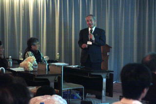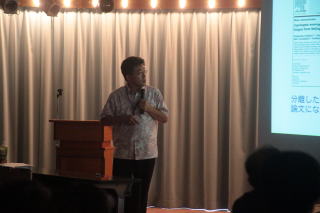 講演会場を埋めた参加者 講演会場を埋めた参加者 福島隆一氏による講演福島隆一氏による講演( ( 写真提供種山裕一氏写真提供種山裕一氏=TY=TY))