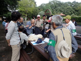 C地区観察グループC地区観察グループ((森林公園中央口にて)森林公園中央口にて)撮影 西田、大久保