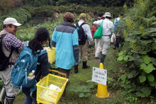 コースを説明する藤野英雄会員 採集地へ誘導する吉田考造会員(コースを説明する藤野英雄会員 採集地へ誘導する吉田考造会員(TYTY))
