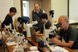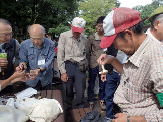 採集を無事終えて鑑定作業へ 安堵する藤野英雄、採集を無事終えて鑑定作業へ 安堵する藤野英雄、大曾根武、葛西俊明、志村隆久会員大曾根武、葛西俊明、志村隆久会員