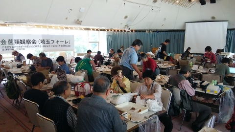 2015 2015年度日本菌学会菌類観察会は、「日本菌学会関東支部」「神奈川キノコの会」「千葉菌類談話会」「菌類懇話会」「幼菌の会」及び当「埼玉きのこ研究会」が共催して、埼玉の地で年度日本菌学会菌類観察会は、「日本菌学会関東支部」「神奈川キノコの会」「千葉菌類談話会」「菌類懇話会」「幼菌の会」及び当「埼玉きのこ研究会」が共催して、埼玉の地で33日間に渡って、実施されました。日間に渡って、実施されました。 福島隆一会長が実行委員長を務めることとなり、当会からも実行委員として、また観察地に選定した「武蔵丘陵森林公園」の案内役として、多数の会員が参加し、フォーレを推進しました。特に観察地として選定した「武蔵丘陵森林公園」については、同公園の温かいご厚意、多大なご協力の基に事前に観察会を複数回実施し、園内をくまなく把握し観察体制を整えました。観察日当日は、その経験から公園内を 福島隆一会長が実行委員長を務めることとなり、当会からも実行委員として、また観察地に選定した「武蔵丘陵森林公園」の案内役として、多数の会員が参加し、フォーレを推進しました。特に観察地として選定した「武蔵丘陵森林公園」については、同公園の温かいご厚意、多大なご協力の基に事前に観察会を複数回実施し、園内をくまなく把握し観察体制を整えました。観察日当日は、その経験から公園内を55地区に区分して、地区に区分して、3030名の会員がそれぞれの担当地区に分散、参加者を先導しました。結果、多くのきのこの観察、採集に寄与することが出来ました。名の会員がそれぞれの担当地区に分散、参加者を先導しました。結果、多くのきのこの観察、採集に寄与することが出来ました。 本観察会は、他にも、有意義な講演や、展示、研究発表等が盛り込まれており、それらは、皆、各会から選出された実行委員各位が事前に心を一つにして多くの準備を重ねた上に実施されたものでした。その結果、大変実り多い観察会として、終了することが出来ました。 本観察会は、他にも、有意義な講演や、展示、研究発表等が盛り込まれており、それらは、皆、各会から選出された実行委員各位が事前に心を一つにして多くの準備を重ねた上に実施されたものでした。その結果、大変実り多い観察会として、終了することが出来ました。 以下にその概要を報告するとともに、武蔵丘陵森林公園のご担当官の皆様、各会の推進者、ご関係者の皆様に厚く御礼申し上げます。 以下にその概要を報告するとともに、武蔵丘陵森林公園のご担当官の皆様、各会の推進者、ご関係者の皆様に厚く御礼申し上げます。