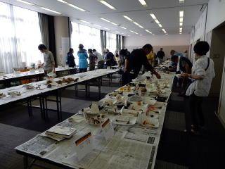 昼食をはさんで、33時間余り、幸い、多くのきのこに恵まれ、定刻迄に観察、採集を終了し、無事にホテルに帰着しました。帰着後は、採集者が銘々持ち帰ったきのこを鑑定し、同定票に種名や特徴、採集場所を記載、展示場に提出しました。その結果、会場には、溢れんばかりのきのこが並びました。時間余り、幸い、多くのきのこに恵まれ、定刻迄に観察、採集を終了し、無事にホテルに帰着しました。帰着後は、採集者が銘々持ち帰ったきのこを鑑定し、同定票に種名や特徴、採集場所を記載、展示場に提出しました。その結果、会場には、溢れんばかりのきのこが並びました。 興奮と熱気が渦巻き、思い思いにきのこを手にして、延々と、同定論議が続きました。 興奮と熱気が渦巻き、思い思いにきのこを手にして、延々と、同定論議が続きました。 顕微鏡観察、DNA確認作業も進められ、また貴重種や状態の良い個体が、保存標本として選定され、次々とラベルが張られてゆきました。 顕微鏡観察、DNA確認作業も進められ、また貴重種や状態の良い個体が、保存標本として選定され、次々とラベルが張られてゆきました。大分類ごとに研究者の解説がなされ、その内容に聞き入った後も、多くの人が居残って、なお、多くのきのこに見入っていました。大分類ごとに研究者の解説がなされ、その内容に聞き入った後も、多くの人が居残って、なお、多くのきのこに見入っていました。 これまで心を一つにして、多くの裏業を担って来られた各会選出の準備委員各位、及び、福島会長、大舘副会長はじめ、諸準備を重ねて来た当会会員、そのすべての努力が報われた一時でした。 これまで心を一つにして、多くの裏業を担って来られた各会選出の準備委員各位、及び、福島会長、大舘副会長はじめ、諸準備を重ねて来た当会会員、そのすべての努力が報われた一時でした。 21 21時より、実行委員は、「反省会」を開き、種々の意見交換を行いました。時より、実行委員は、「反省会」を開き、種々の意見交換を行いました。 その折、今回の観察場所、森林公園において、観察時の注意事項の不徹底による、一部の参加者の残念な行為(歩行禁止区域である自転車道への立ち入り、きのこ採取行為)が発生していたこと、及びそうした異常事態、緊急時の連絡体制の不備等が判明しました。その為もあって、今後のフォーレに向けて、様々な改善策が提案されました。 その折、今回の観察場所、森林公園において、観察時の注意事項の不徹底による、一部の参加者の残念な行為(歩行禁止区域である自転車道への立ち入り、きのこ採取行為)が発生していたこと、及びそうした異常事態、緊急時の連絡体制の不備等が判明しました。その為もあって、今後のフォーレに向けて、様々な改善策が提案されました。((33日目)日目) 閉会式の後、遠来の参加者は、帰途につきましたが、なお、特別企画として、野生きのこの放射能汚染の現状が、様々な実地検証によって、報告されました。今後、菌類観察者として何が出来るのか、何を為すべきか、重い課題を残したまま終了しましたが、非常に有意義な「特別企画」でした。 閉会式の後、遠来の参加者は、帰途につきましたが、なお、特別企画として、野生きのこの放射能汚染の現状が、様々な実地検証によって、報告されました。今後、菌類観察者として何が出来るのか、何を為すべきか、重い課題を残したまま終了しましたが、非常に有意義な「特別企画」でした。 フォーレ終了後、福島、大舘、西田の フォーレ終了後、福島、大舘、西田の33名で、お世話になった森林公園を訪れ、本観察会における不手際を陳謝申し上げ、重ねてこれまでのご厚志の御礼を申し述べました。名で、お世話になった森林公園を訪れ、本観察会における不手際を陳謝申し上げ、重ねてこれまでのご厚志の御礼を申し述べました。本報告においても、伏して、深謝申し上げます。本報告においても、伏して、深謝申し上げます。【配布資料 一覧】【配布資料 一覧】1.1.冊子(実行委員長巻頭挨拶、日程表、開会式講演会プログラム、冊子(実行委員長巻頭挨拶、日程表、開会式講演会プログラム、観察地、観察手順、観察時注意事項について、観察地、観察手順、観察時注意事項について、同定会場案内図、採集品陳列配置図、同定カード記入要領、標本作成手順、同定会場案内図、採集品陳列配置図、同定カード記入要領、標本作成手順、新旧分類体系早見表、新旧分類体系早見表、特別企画「今、きのこの放射性セシウムは」プログラム特別企画「今、きのこの放射性セシウムは」プログラム参加者名簿、宿泊ホテル館内案内図)参加者名簿、宿泊ホテル館内案内図)2.2.講演要旨(講演者、福島隆一、吹春俊光)講演要旨(講演者、福島隆一、吹春俊光)3.3.特別企画資料(各発表者による作成資料)特別企画資料(各発表者による作成資料)4.4.観察地「国営武蔵丘陵森林公園公式ガイドマップ」観察地「国営武蔵丘陵森林