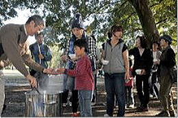 が多かったので何杯もお替りする人で大盛況であった。美味しいという声を聞くと我々俄か調理人としても、