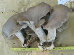 採集品は懸念通り、軟らかいキノコが少なく硬いキノコばかり目に付いたが、栽培したような美しいヒラタケ
