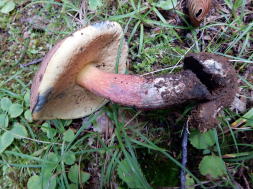 ◎ 撮影 撮影 西田誠之(無記名全て)村田紀彦西田誠之(無記名全て)村田紀彦 今年の夏季宿泊観察会は老神温泉東秀館を宿として、片品村周辺を中心に採集が行われた。八月に入ってからは雨がほとんど降らなかったのに、四日ほど前からは台風の影響により、かなりの雨が降った直後という悪いコンディションであった。取り敢えず皇海山麓の松茸山に入ってみたが、八月当初下見に来たときと同じで、キノコは全く無い。ただ、松の木のふもとに縦横無尽につけられた小道には新しい足跡があったので人は入っているようである。湿気のある所を求めて沢筋まで降りて見た。昨年は、季節は違うが、途中でマツタケ、クロカワ、ニセアブラシメジ、ヌメリササタケ、アンズタケ、チチタケなどが採れたところを入念に見て回ったが皆目見当たらない。受付もしなければならないので早々に切り上げて宿へ向かう。それでも武尊や丸沼へ行ったグループが到着するとそれなりにキノコが集まってきた。最終的には 今年の夏季宿泊観察会は老神温泉東秀館を宿として、片品村周辺を中心に採集が行われた。八月に入ってからは雨がほとんど降らなかったのに、四日ほど前からは台風の影響により、かなりの雨が降った直後という悪いコンディションであった。取り敢えず皇海山麓の松茸山に入ってみたが、八月当初下見に来たときと同じで、キノコは全く無い。ただ、松の木のふもとに縦横無尽につけられた小道には新しい足跡があったので人は入っているようである。湿気のある所を求めて沢筋まで降りて見た。昨年は、季節は違うが、途中でマツタケ、クロカワ、ニセアブラシメジ、ヌメリササタケ、アンズタケ、チチタケなどが採れたところを入念に見て回ったが皆目見当たらない。受付もしなければならないので早々に切り上げて宿へ向かう。それでも武尊や丸沼へ行ったグループが到着するとそれなりにキノコが集まってきた。最終的には100100種を超えるキノコが同定にかけられた。中でも目立ったのはハダイロニガシメジでこれほど大きなものを見るのは初めてである。また、フウセンタケ属も何種か持ち込まれたが、やはり名前のつかないものが多い。本当に鑑定人泣かせの属である。翌日は生憎の土砂降りとなってしまい、山に入るのは憚られる状態となってしまった。朝食の後ゆっくりと説明会を行い、三々五々の出立となった。種を超えるキノコが同定にかけられた。中でも目立ったのはハダイロニガシメジでこれほど大きなものを見るのは初めてである。また、フウセンタケ属も何種か持ち込まれたが、やはり名前のつかないものが多い。本当に鑑定人泣かせの属である。翌日は生憎の土砂降りとなってしまい、山に入るのは憚られる状態となってしまった。朝食の後ゆっくりと説明会を行い、三々五々の出立となった。