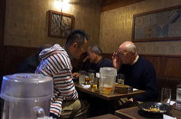 お酒はビール、洋酒、焼酎、清酒、ワイン等々、とにかく豊富、最初はキノコ談義に