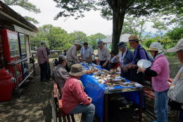 一般参加のご家族 撮影;西田誠之 山頂広場での鑑定会 撮影;栗原晴夫 コガネヤマドリの説明 撮影;富田稔