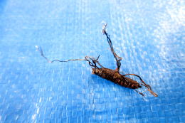 オサムシタケ 幼虫より発生 撮影;大久保彦 カメムシタケ 撮影;富田稔